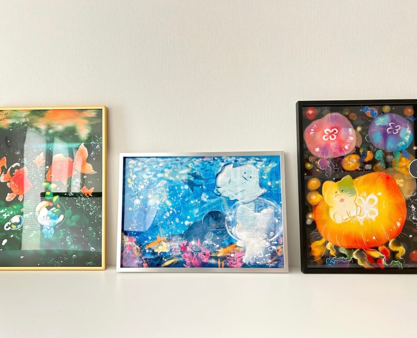 大阪にて行った展示「夢見る猫の水族館」展にて飾らせていただいた絵画です